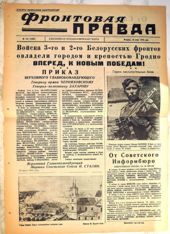 О чем писала газета «Фронтовая правда» после освобождения Гродно 80 лет назад?