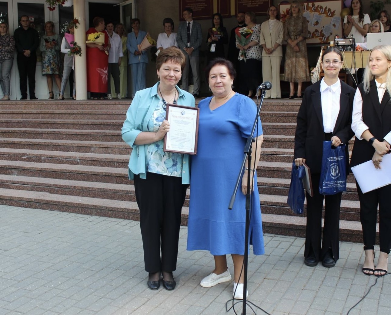 Торжественная линейка, посвящённая Дню Знаний «Здравствуй, колледж!» Участие в линейки приняли представители предприятий, на которых проходят практику учащиеся колледжа, председатель областной организации Белхимпрофсоюза Лясковская Е.И., которая поприветствовал добрыми пожеланиями учащихся и преподавателей, а также вручила награды областной организации наиболее активным педагогам колледжа.
