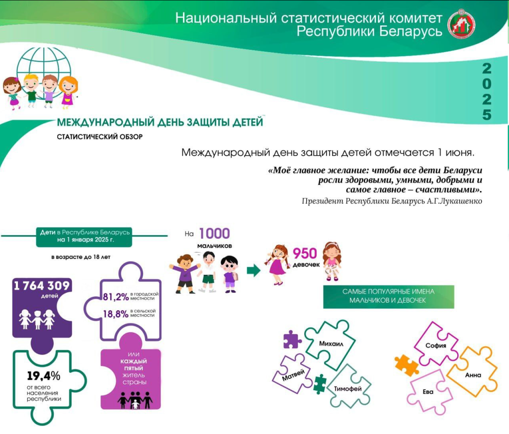 Более 1,7 миллиона детей проживает в Беларуси. Статистический обзор к Международному дню защиты детей